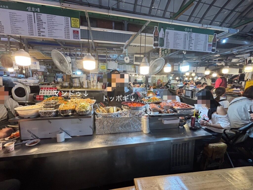 最後に、地下鉄でEuljiro4(sa)ga駅を降りて、広蔵市場へ。入り口付近は閉まっているお店も多く、薄暗いため、若干怖い雰囲気ですが、中心部まで行くとお客さんも増え、活気が出てきます。