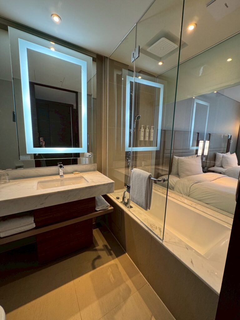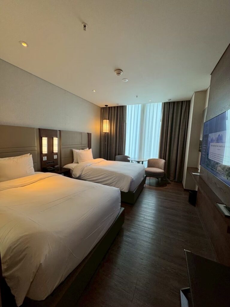 宿泊したコートヤード・ソウル南大門は広々した客室に、バスタブ付きのシャワールームがあり、抜群の綺麗さでした。