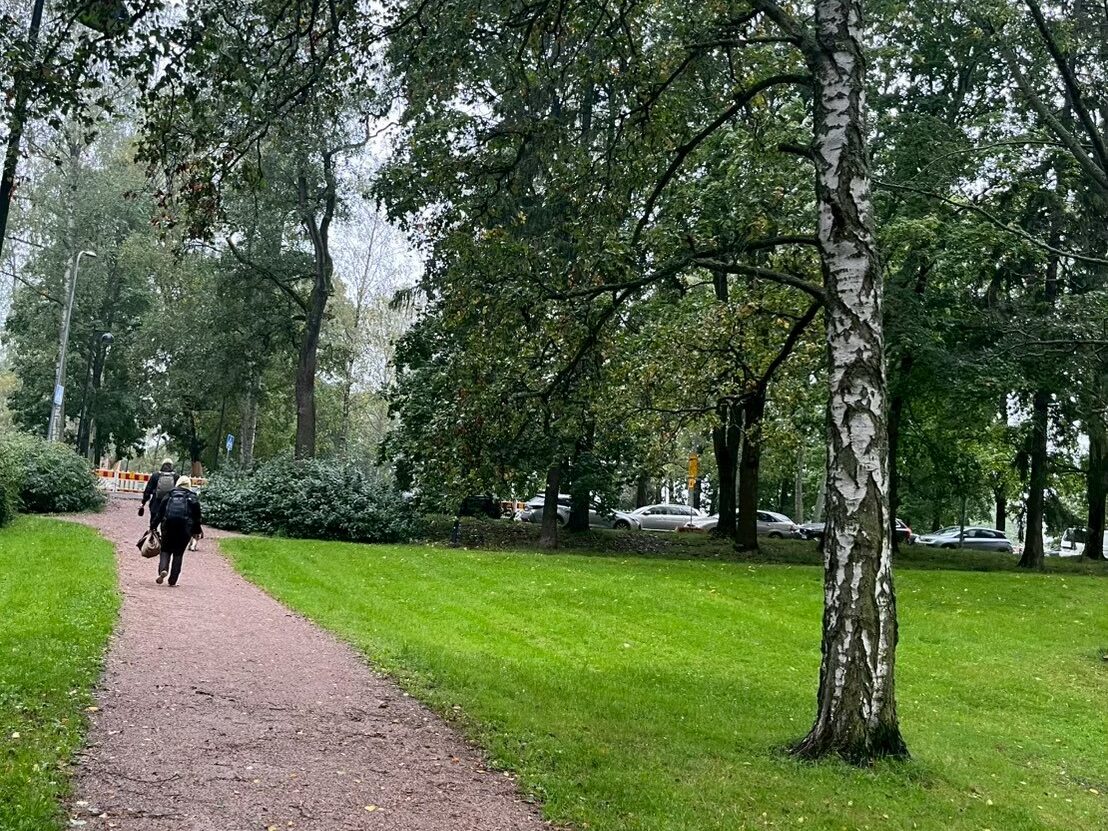 KORVARIからレガッタまでは徒歩で15分(トラムの場合も15分)。シベリウス公園を通り抜けます。この日は雨が降っていたため、地面がぬかるんでいました。