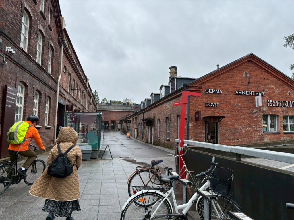 Arabiabkatuという駅で降りると、レンガ造りの建物(複数のショップが入っています)の先にアラビアの文字と煙突が見えます。