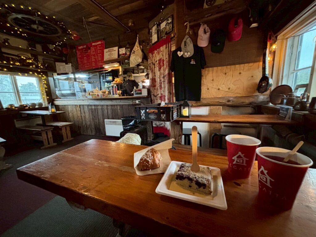 レジ横に出来立てのシナモンロールが積み重ねられていて、店内に美味しい香りが漂っています。