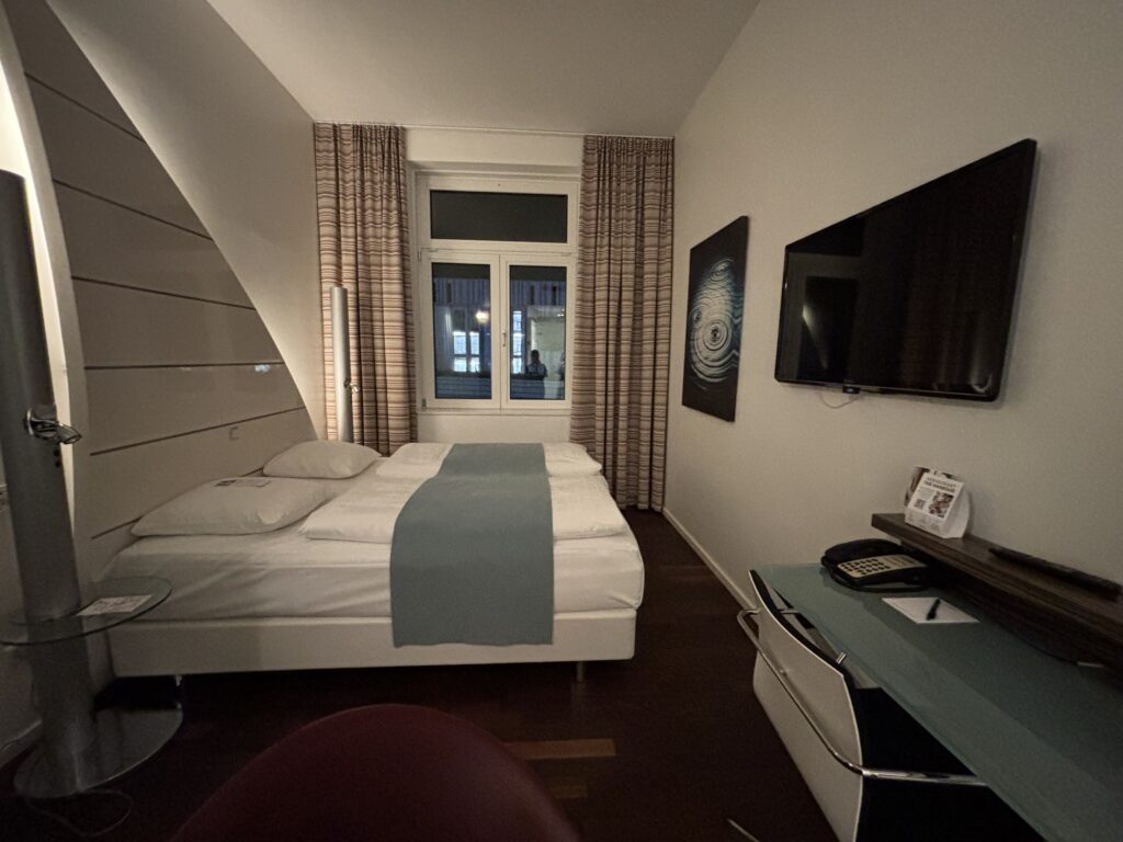 中央駅からホテルまでは電車で10分。徒歩でも20分。ホテルの口コミには狭いという記載がありましたが、日本のビジネスホテルくらいでした。
