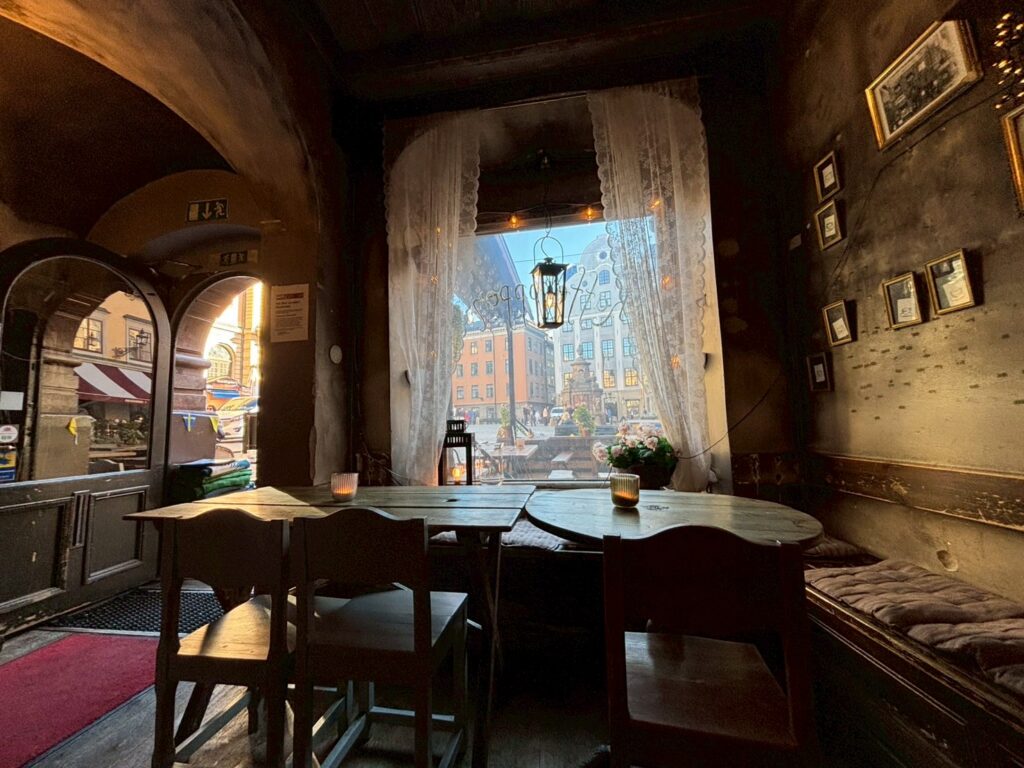 ガムラスタンの中心である大広場に面した人気カフェ。ノーベル博物館のすぐ隣にある赤い建物です。