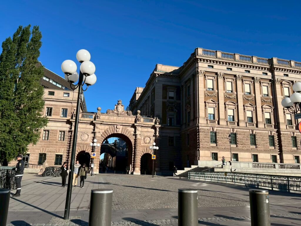 市庁舎からガムラスタンに向かう途中、国会議事堂も通ります。重厚感のある建物で、朝の陽射しが良く差していました。こちらも内覧はガイドツアーへの参加が必須なので、外から眺めて通過。