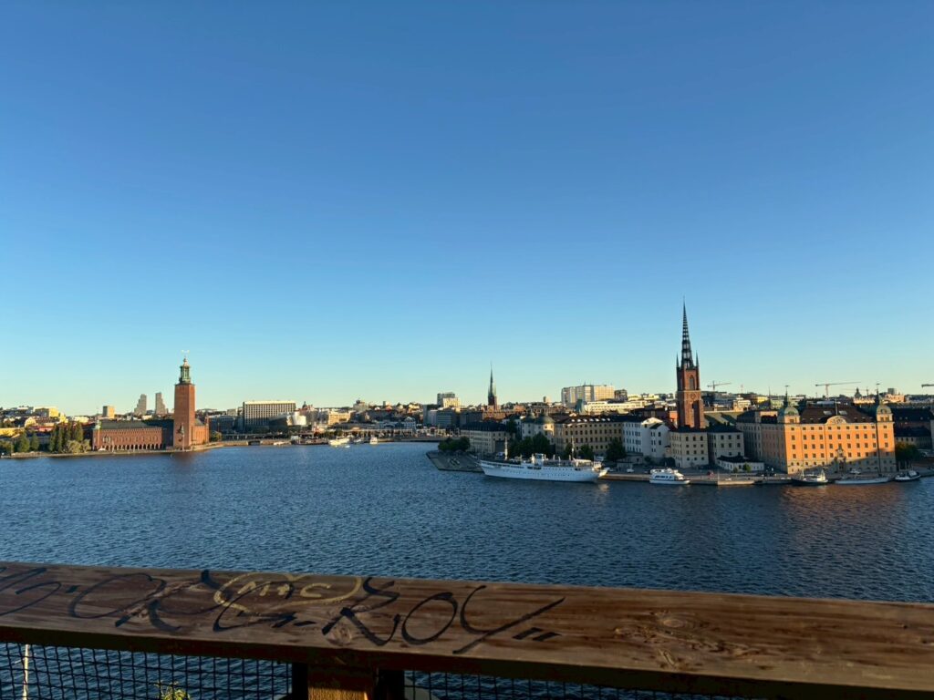 坂の途中で、右側の小道に入る看板があります。そこからはすぐに展望エリア。写真では納まりきらないほど、ストックホルムの絶景が全面に広がっています。