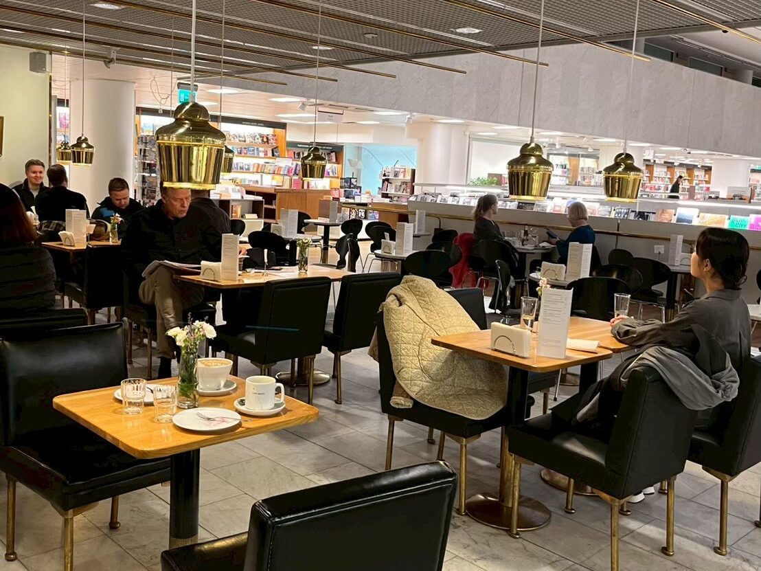 カフェアアルトはヘルシンキ中央駅から徒歩10分、アカデミア書店の2階にあります。営業時間が曜日によって異なり、19時には閉店(早いと18時)なので要注意です。同じ建物に家具店「アルテック(Artek Helsingfors)」もあるため、併せて散策できます。