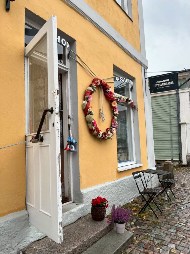 偶然通りかかったクラフトショップで、お土産を購入。フィンランド製や手作りの雑貨が多数あり、値段もお手頃でした。私は陶器でできた小さいサンタの置物を購入。