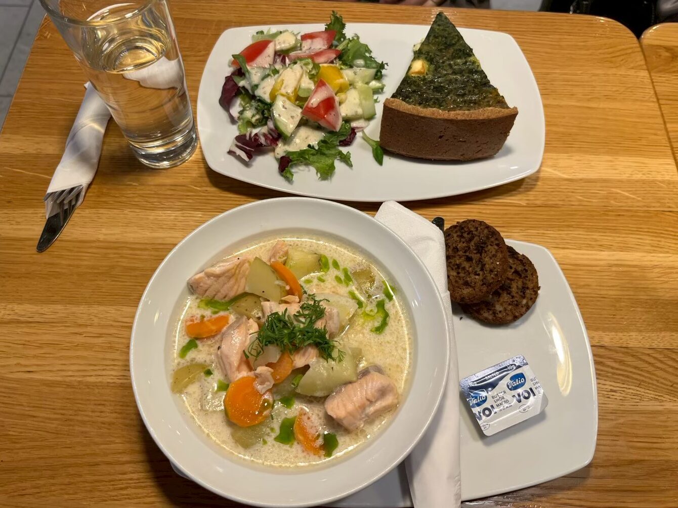 日替わりサラダとスープはランチのみの提供ですが、サーモンスープとキッシュ(House pie)は夜でも注文できました。