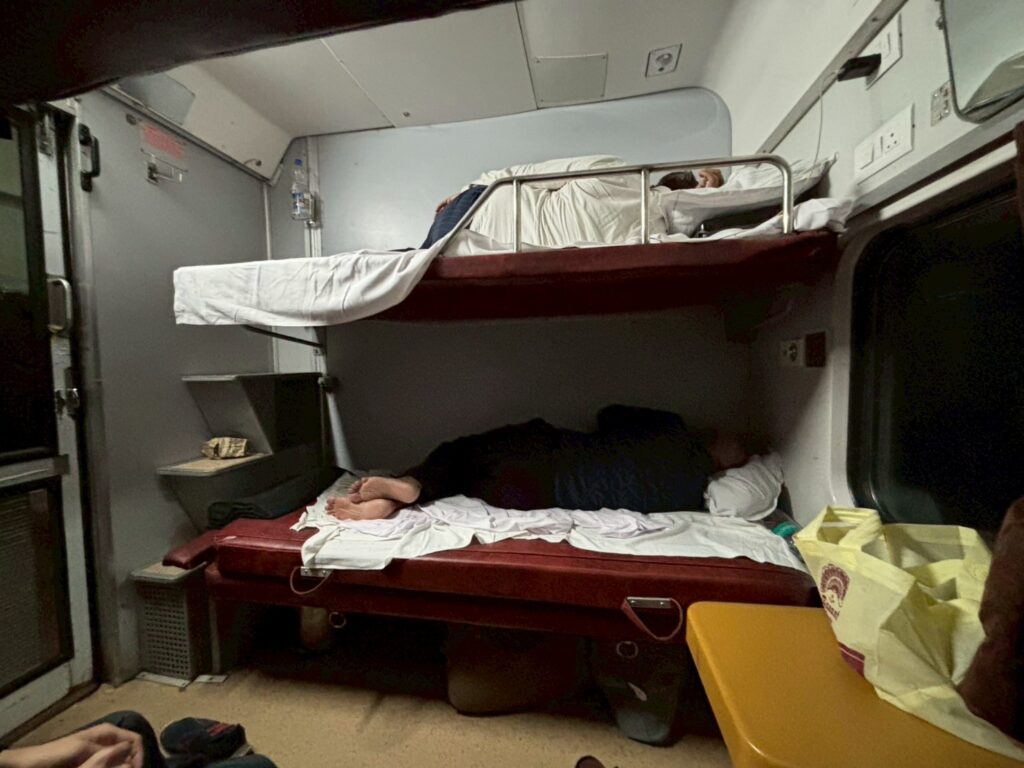 今回は、バラナシからアグラ(約8時間)とアグラからデリー(約3時間)の電車をロコタビで依頼し、PDFのチケットを取得しました。1等車(ドア付きの個室で4人部屋)を予約したため、座席番号はチケットに記載されておらず、現地でホテルの方などに聞いて確認しました。(現地の人の「ixigo」にチケット番号を入力するとすぐに座席番号が出ますが、自分のアプリでは出ませんでした。)